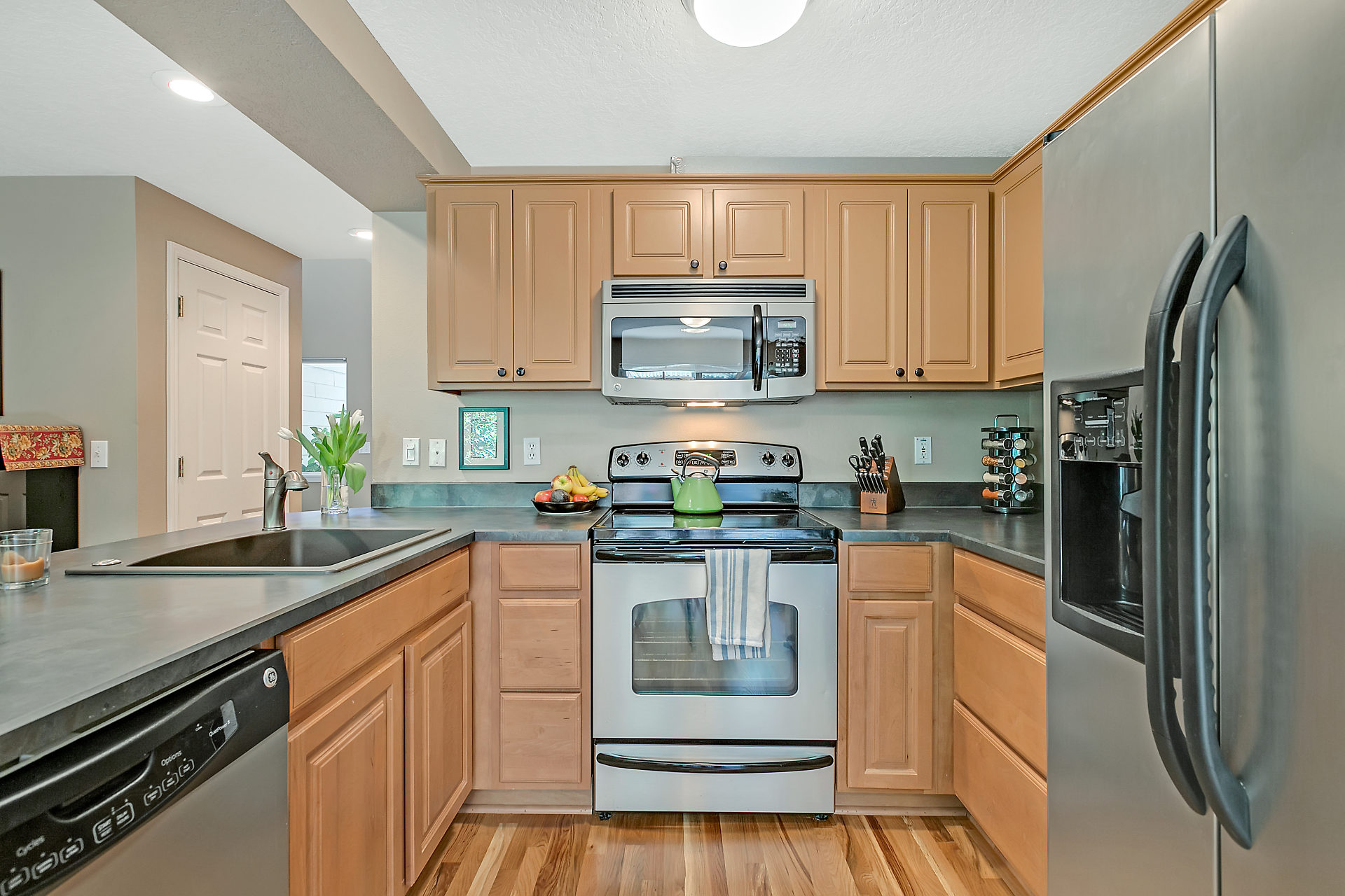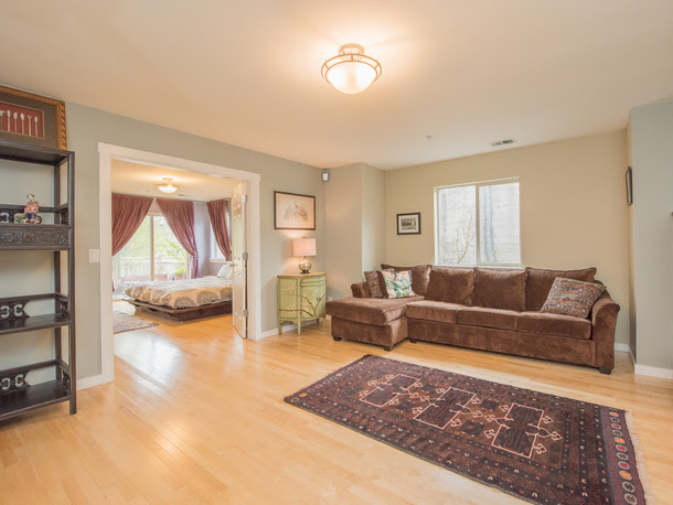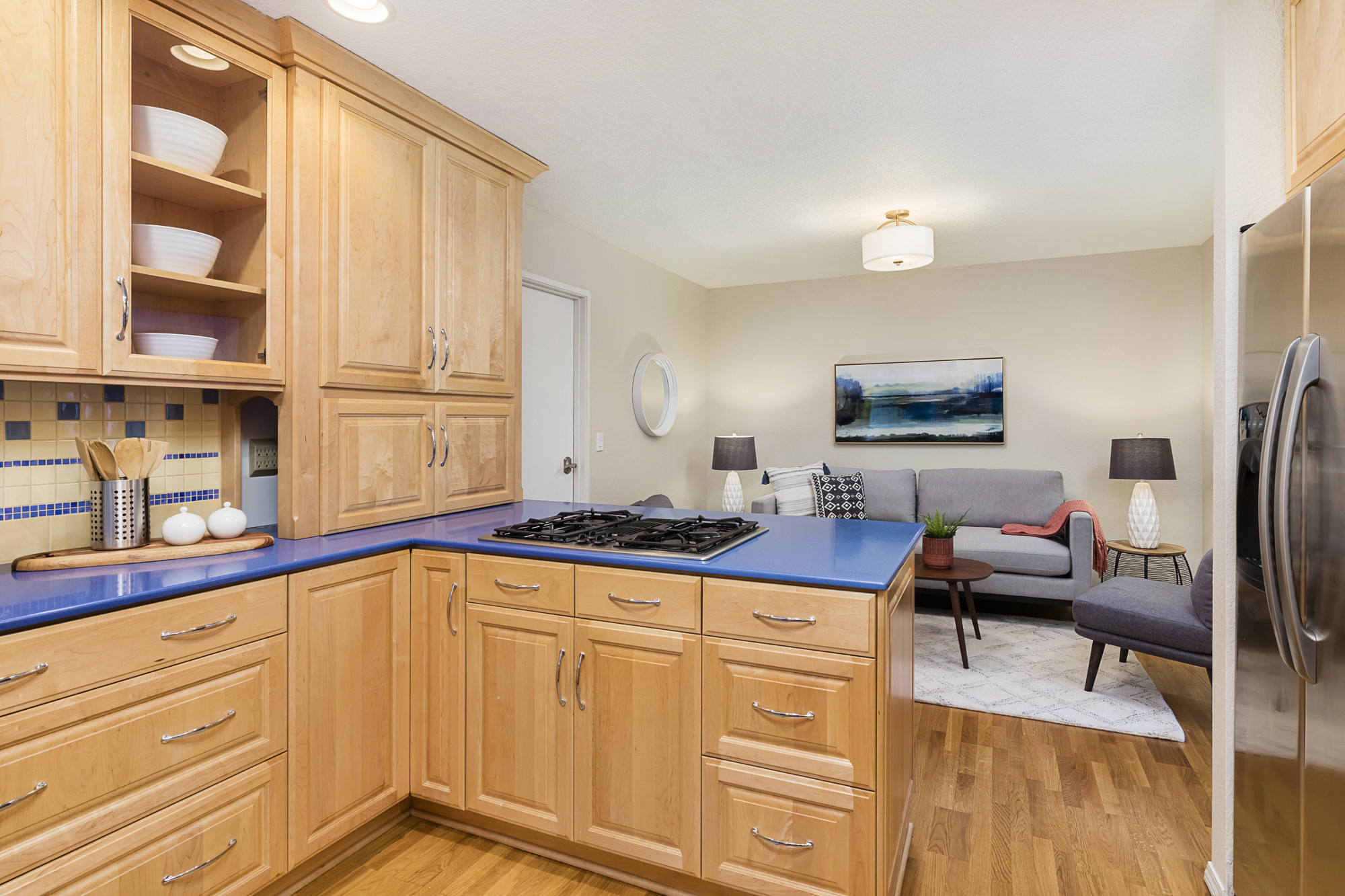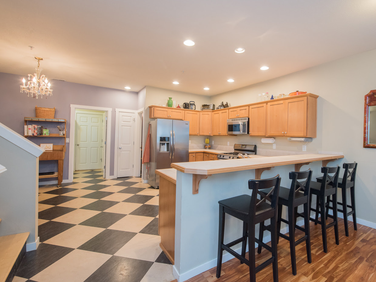 This upgraded townhome offers elegant luxury at an affordable price! Step through the front door and immediately notice the care and attention to detail, with updated engineered wood flooring, smooth-finished walls, and a beautifully tiled fireplace adjacent to your private backyard access! The yard is a rarity for this property type, and it is meticulously landscaped, wonderfully inviting, and includes a patio for al fresco dining during the summer months.