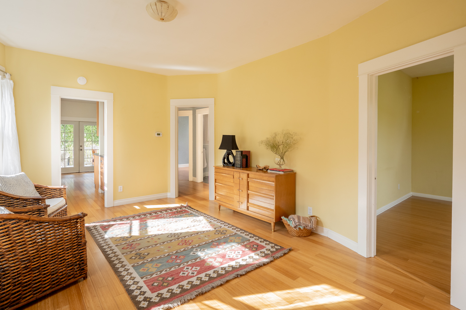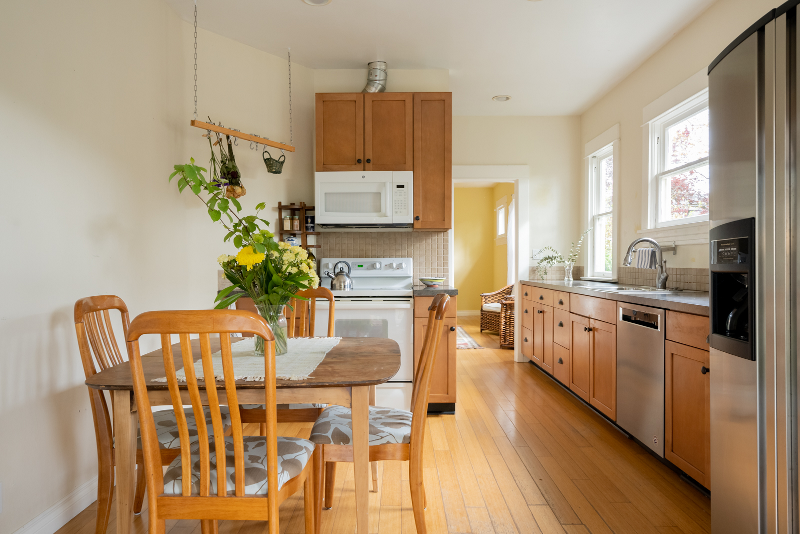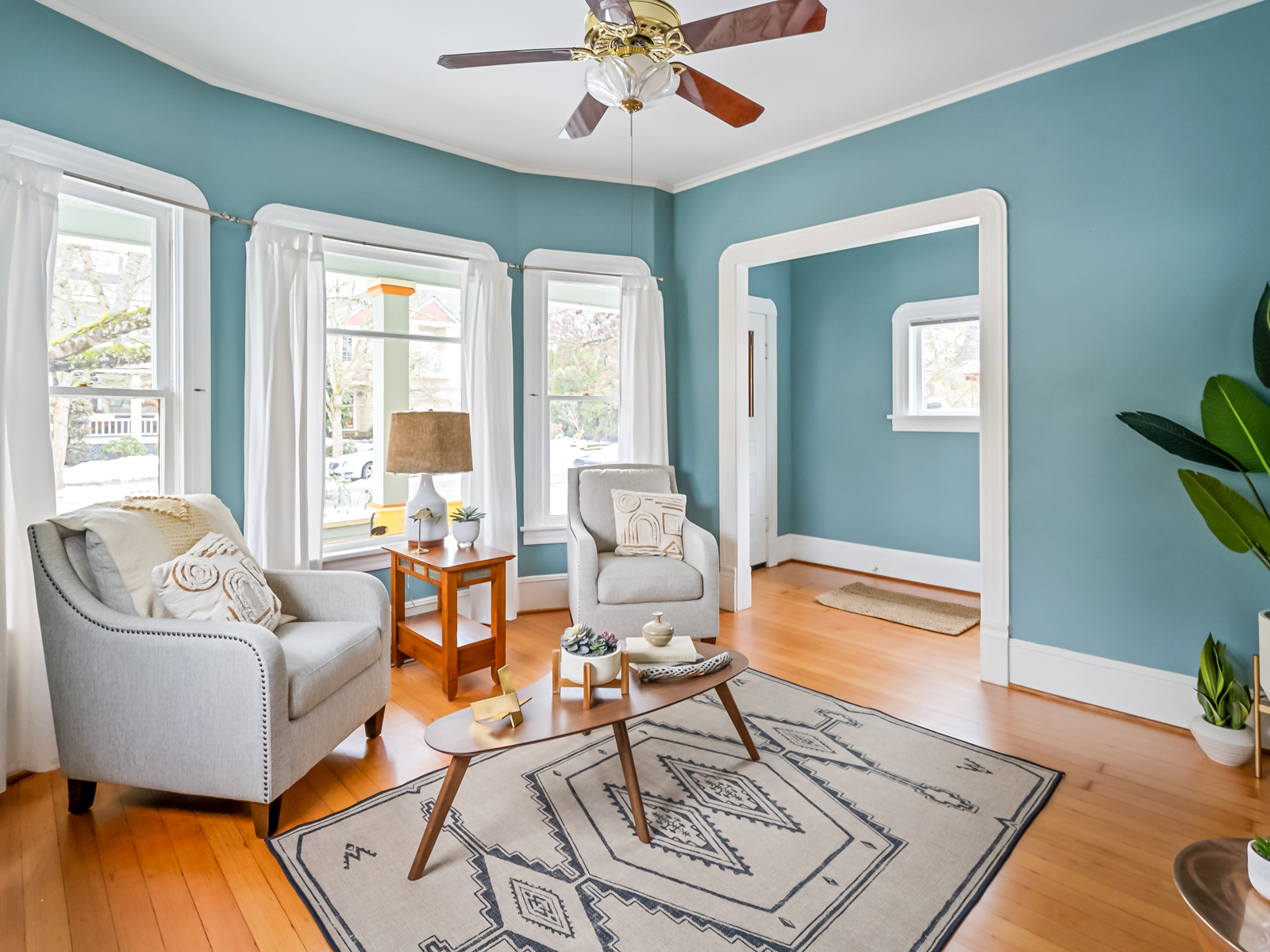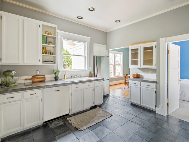 The house itself is full of warmth and light, with high ceilings, original wood floors, and a spacious layout that features a formal living room, a comfortable kitchen with new marmoleum flooring that flows into the dining room, and a main floor bedroom and bathroom. Upstairs, find a second full bathroom, plus two more bedrooms, including a generous primary with a connected sitting room/office area (or make this space an epic walk-in closet!).