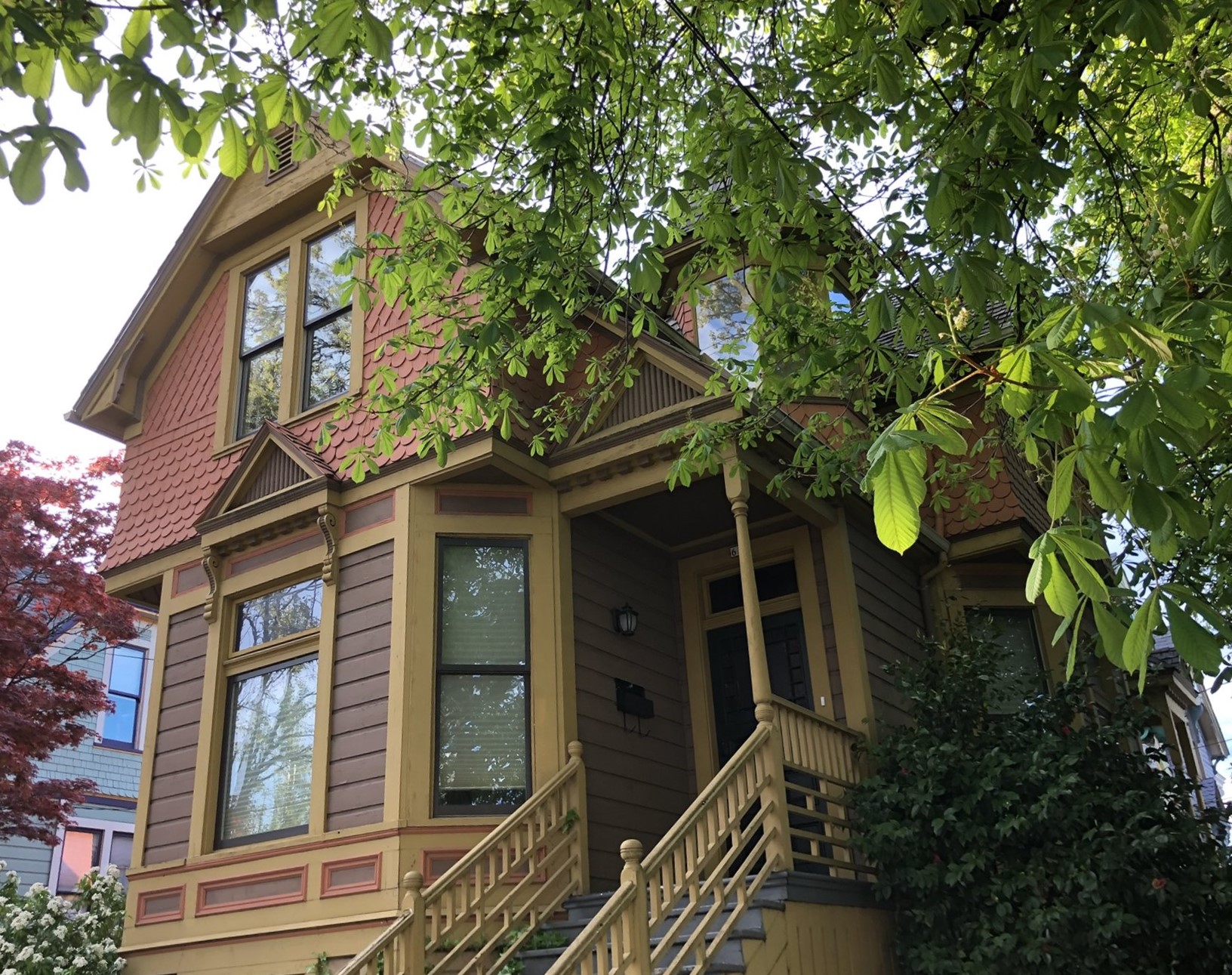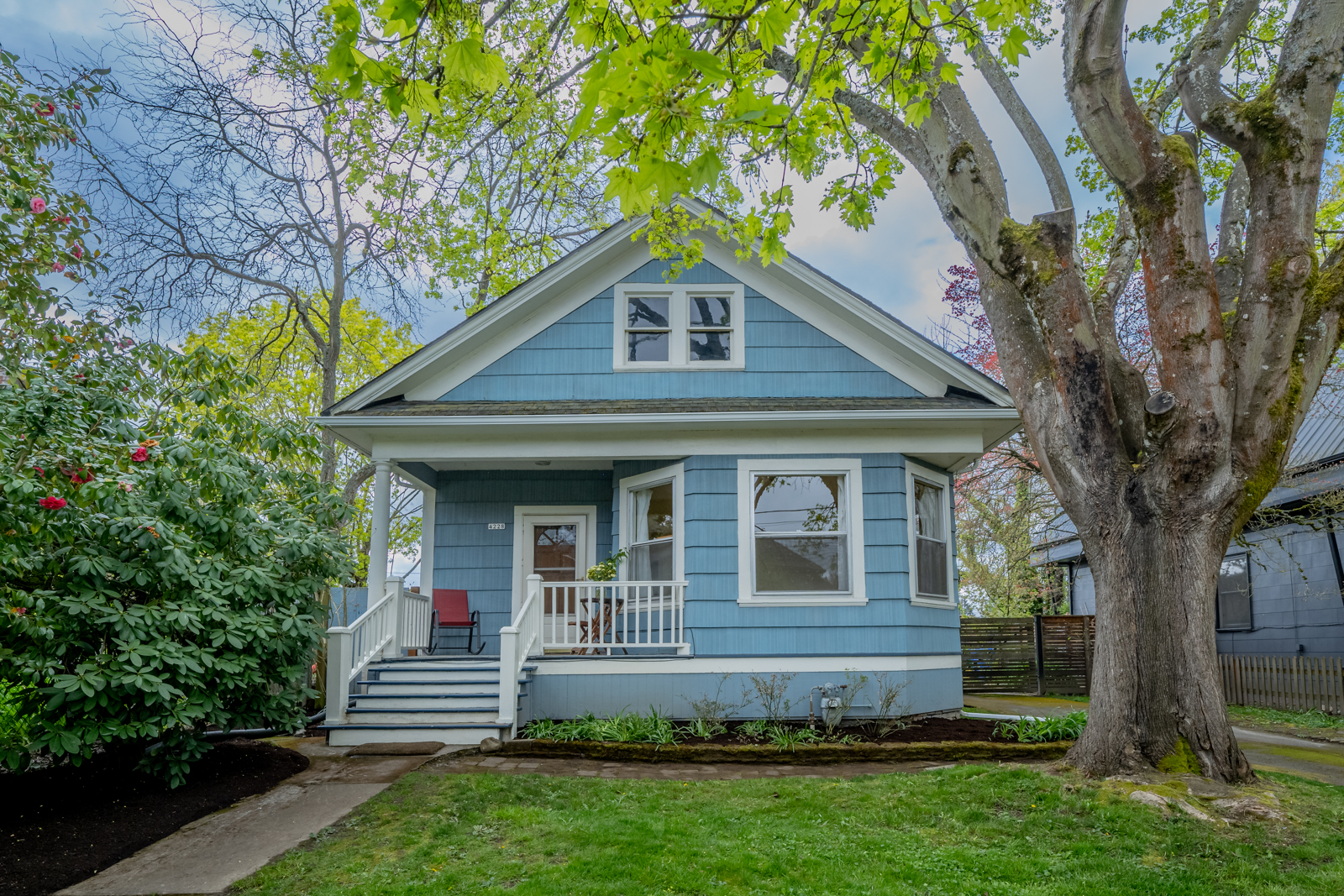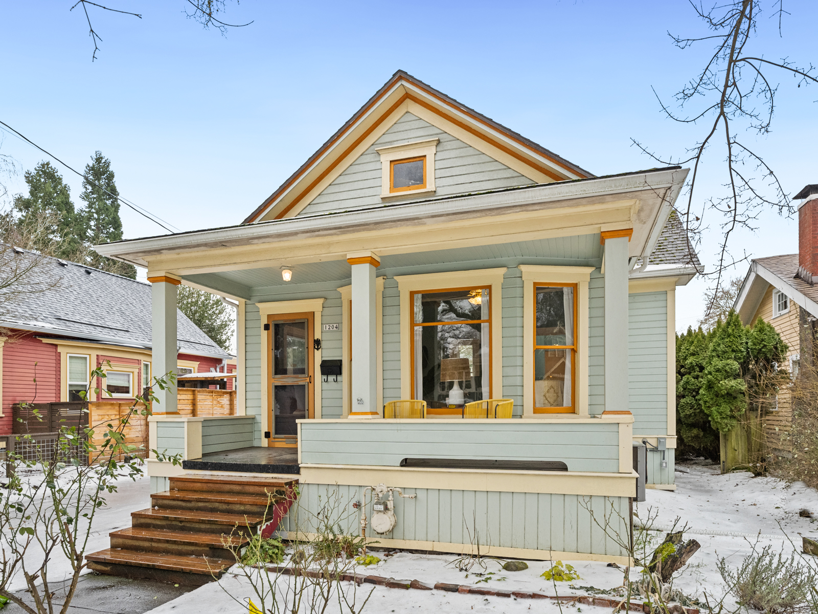 Ever stroll down 13th avenue in historic Sellwood and think “I’d sure love to live here”? Ever wander past the rows of perfect turn-of-the-century houses, painted out in bright colors and feel painfully covetous? Ever wish you too could own a piece of history, a period-perfect home that lovingly retains its vintage aesthetic? Perhaps you saw Season 8 Episode 5 4:00 of PORTLANDIA (the parallel parking scene) and caught a glimpse of this beauty itself? Well this is your chance to own one of your very own! Right in the heart of Sellwood, amidst the shops and cafes, on a quiet tree-lined street just a block from the library and another two to the park, sits a stylistic example of “Porch-Gable” bungalow design. Featured in Architectural Historian Thomas Hubka’s article “Sellwood’s Boom Era Houses”,