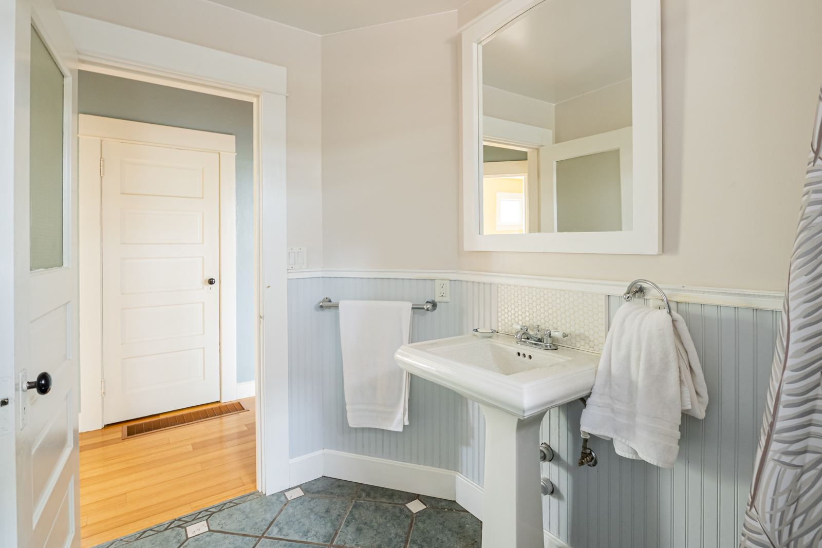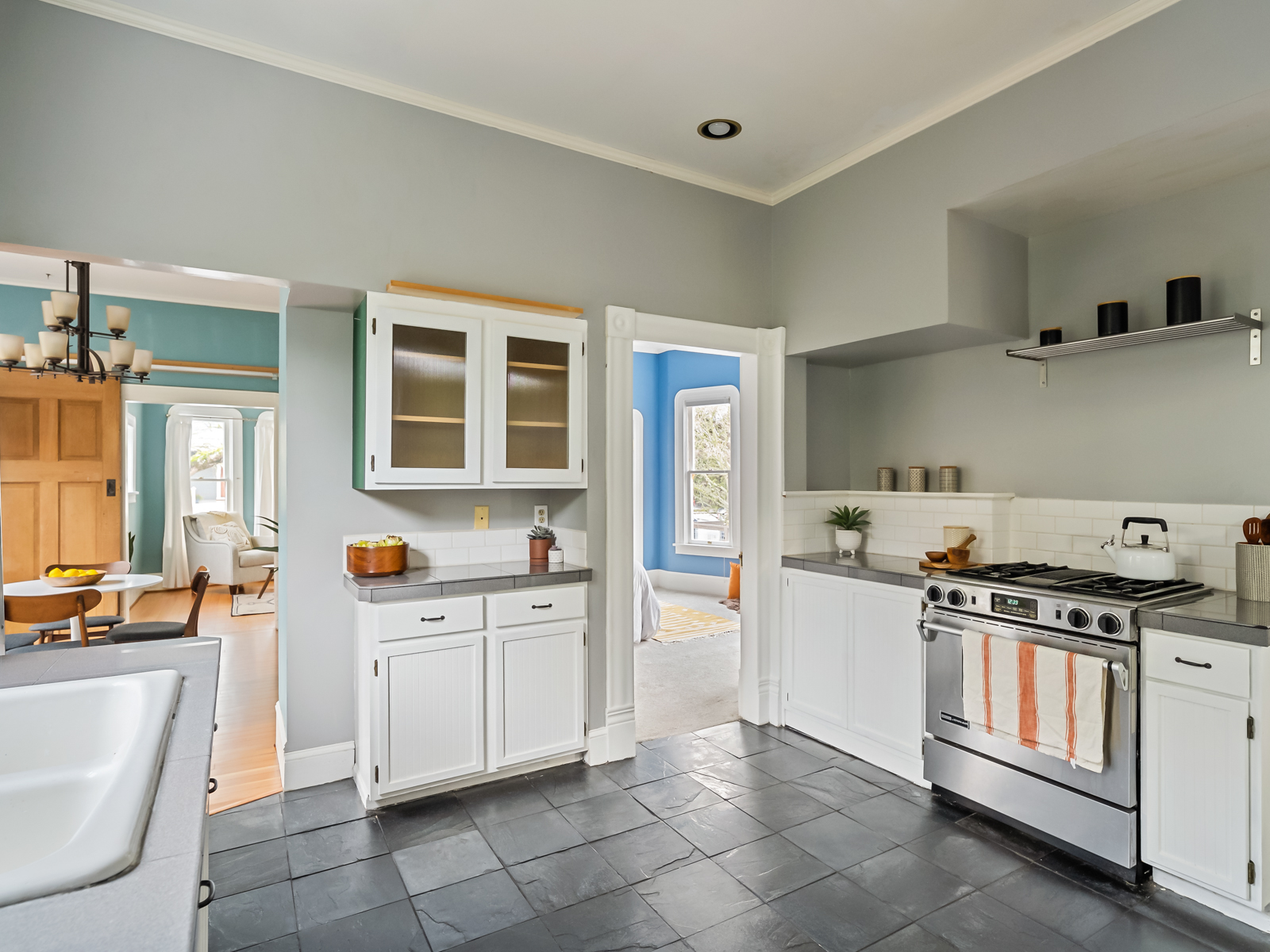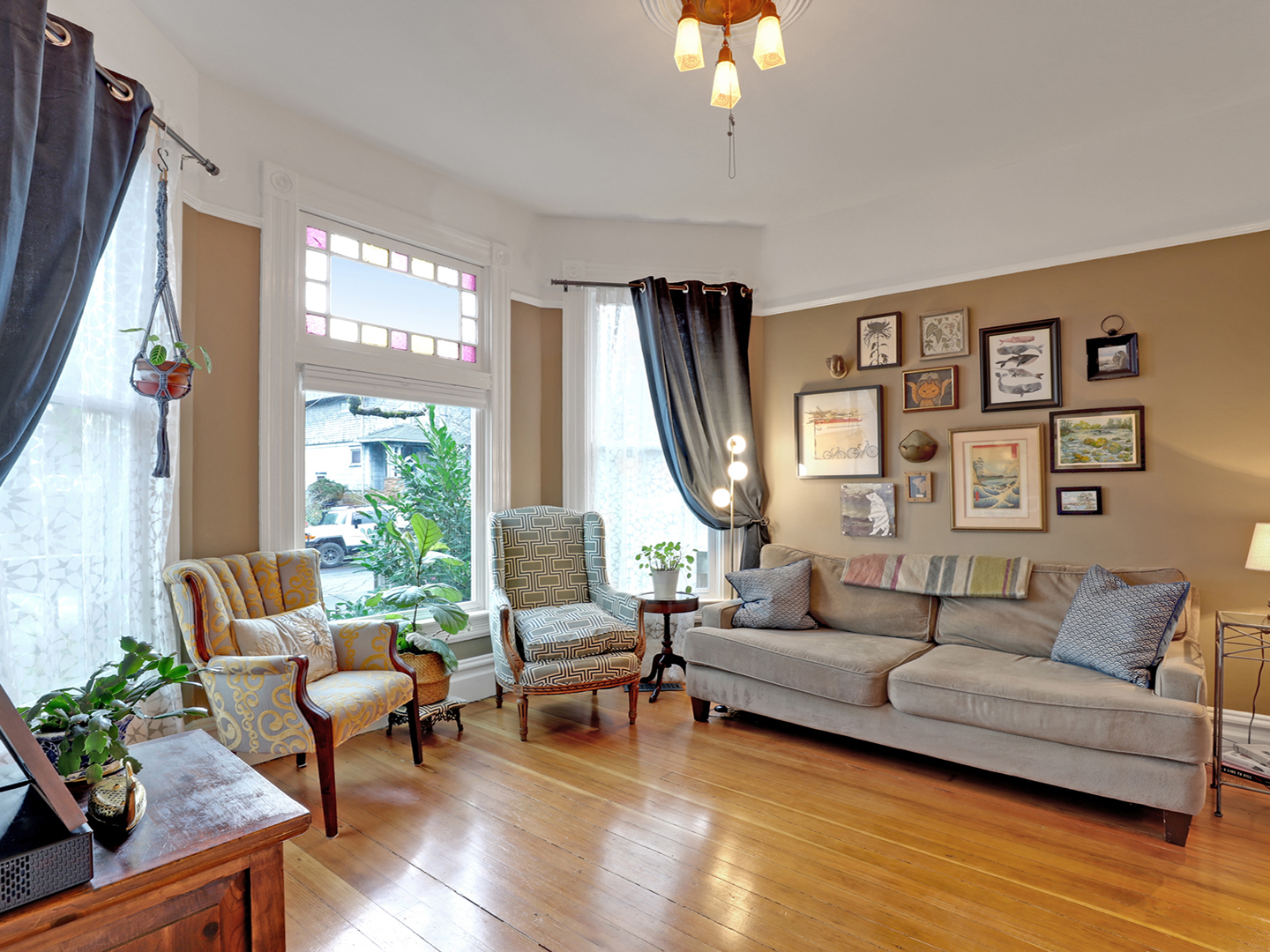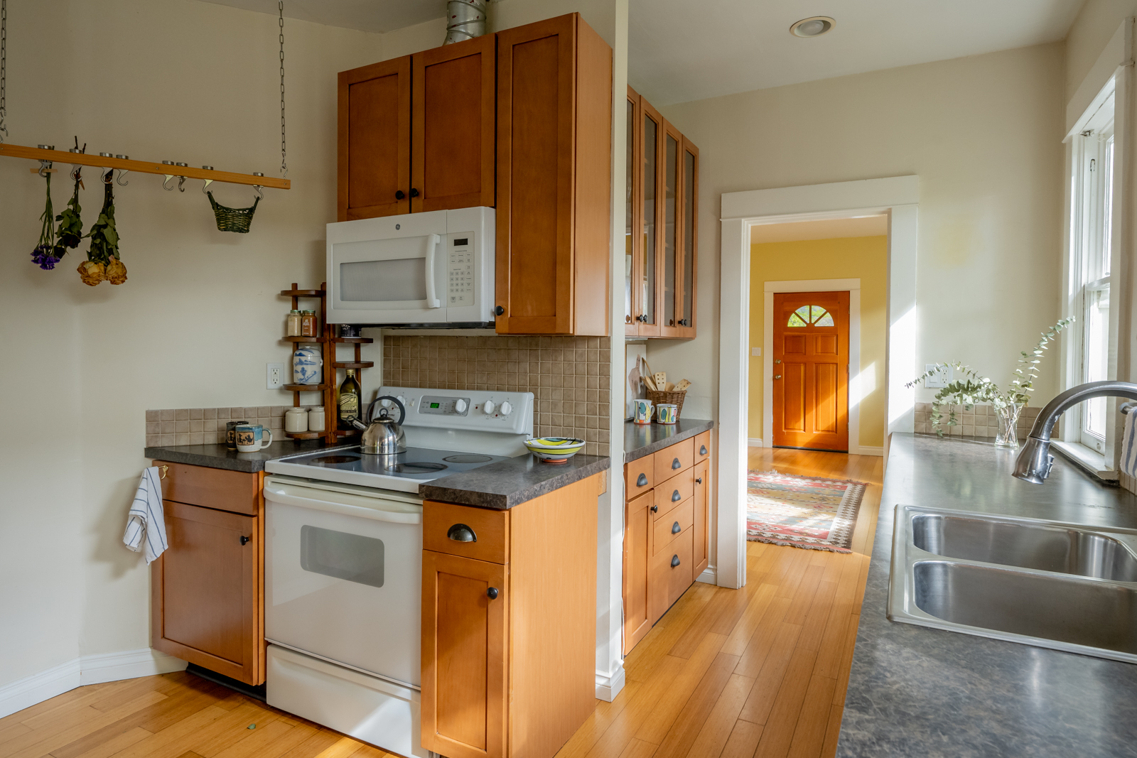 Ever stroll down 13th avenue in historic Sellwood and think “I’d sure love to live here”? Ever wander past the rows of perfect turn-of-the-century houses, painted out in bright colors and feel painfully covetous? Ever wish you too could own a piece of history, a period-perfect home that lovingly retains its vintage aesthetic? Perhaps you saw Season 8 Episode 5 4:00 of PORTLANDIA (the parallel parking scene) and caught a glimpse of this beauty itself? Well this is your chance to own one of your very own! Right in the heart of Sellwood, amidst the shops and cafes, on a quiet tree-lined street just a block from the library and another two to the park, sits a stylistic example of “Porch-Gable” bungalow design. Featured in Architectural Historian Thomas Hubka’s article “Sellwood’s Boom Era Houses”,