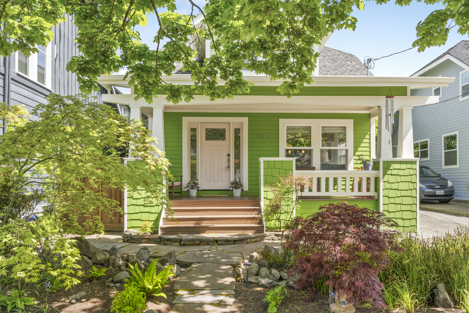 The excellent layout includes three bedrooms and one bath (with vintage clawfoot tub) all on the second floor, with a family room and ensuite bedroom with recently updated bath in the finished basement. Access the basement from either inside the home or the side entrance: this is the perfect space for long term house guests, a renter, or to create a peaceful primary retreat away from it all. Enjoy modern conveniences like a spacious kitchen with Corian counters, new tear-off roof (’24), new furnace (’23), and seismic upgrades for peace of mind.