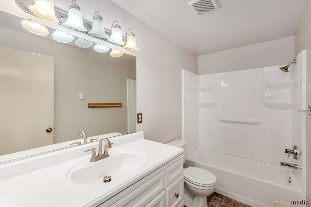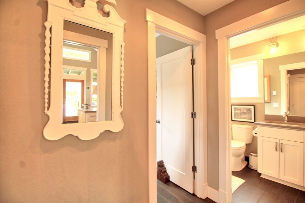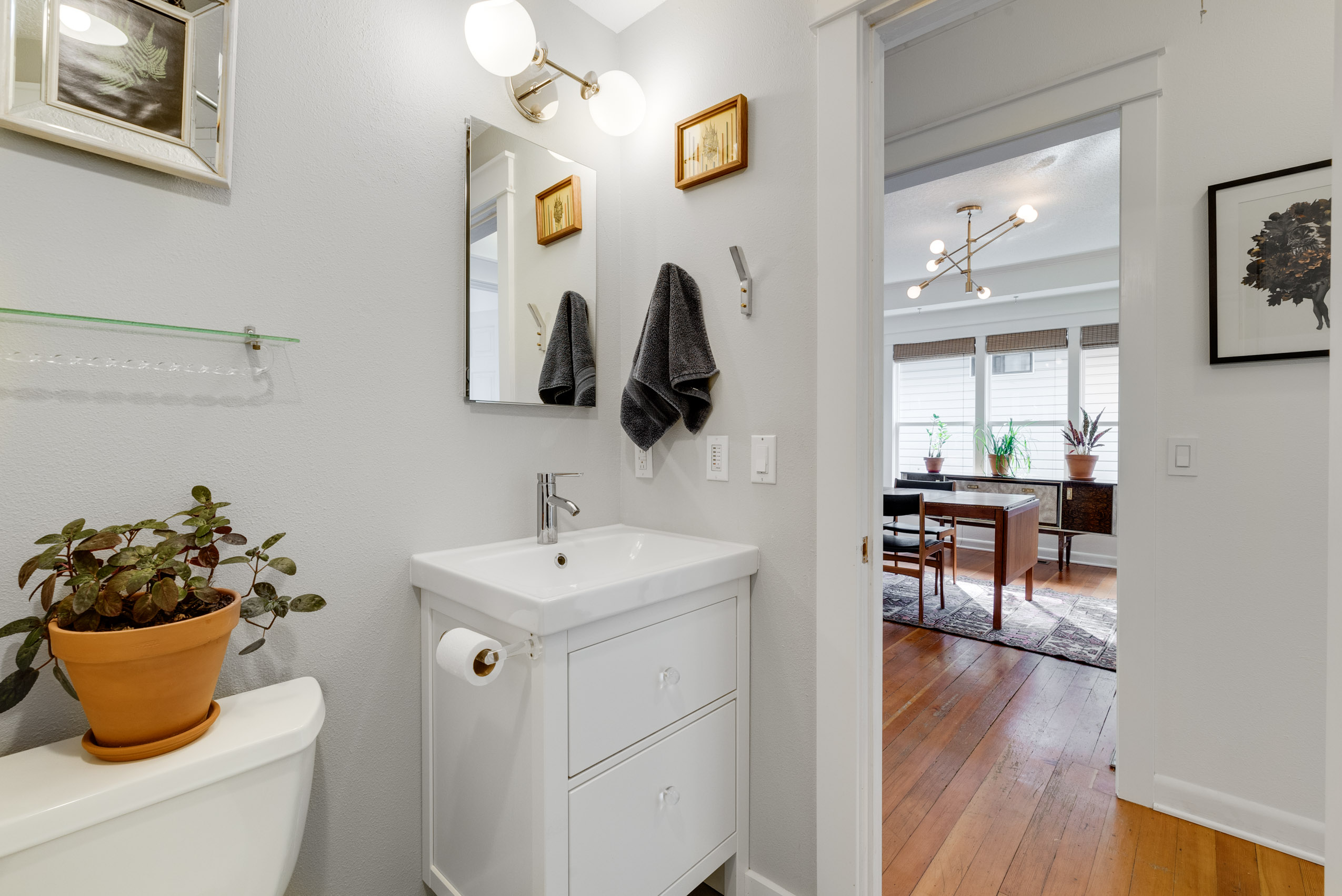 The layout and flow throughout the home is absolutely ideal for a home of this size. Through the hall, you’ll find three bedrooms filled with natural light and ample closets. Also, a roomy bathroom with double sinks and stylish updates.