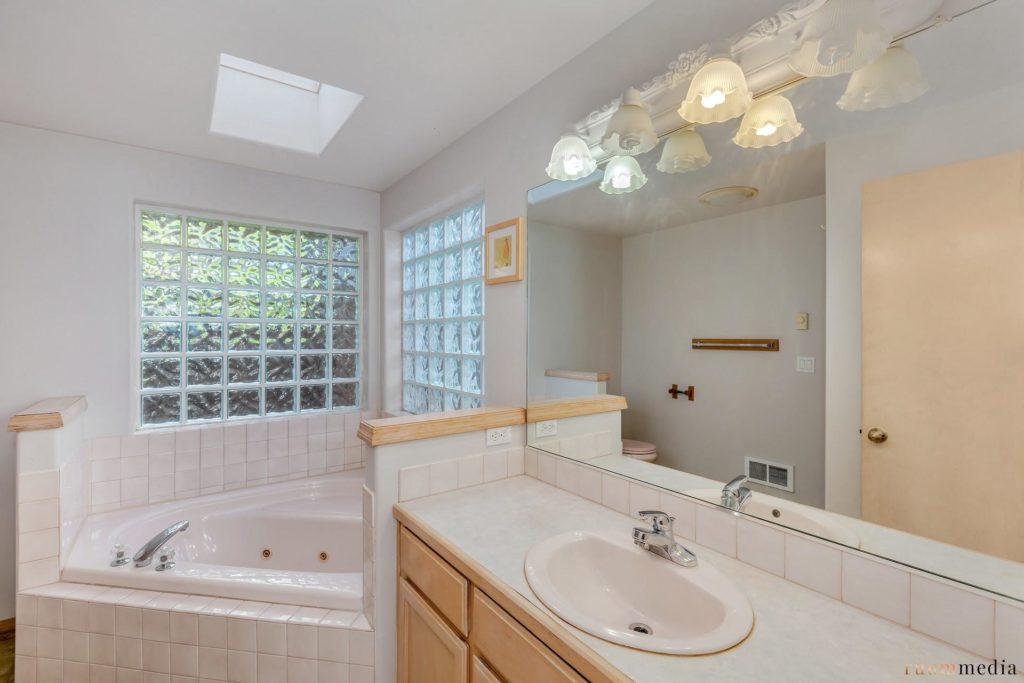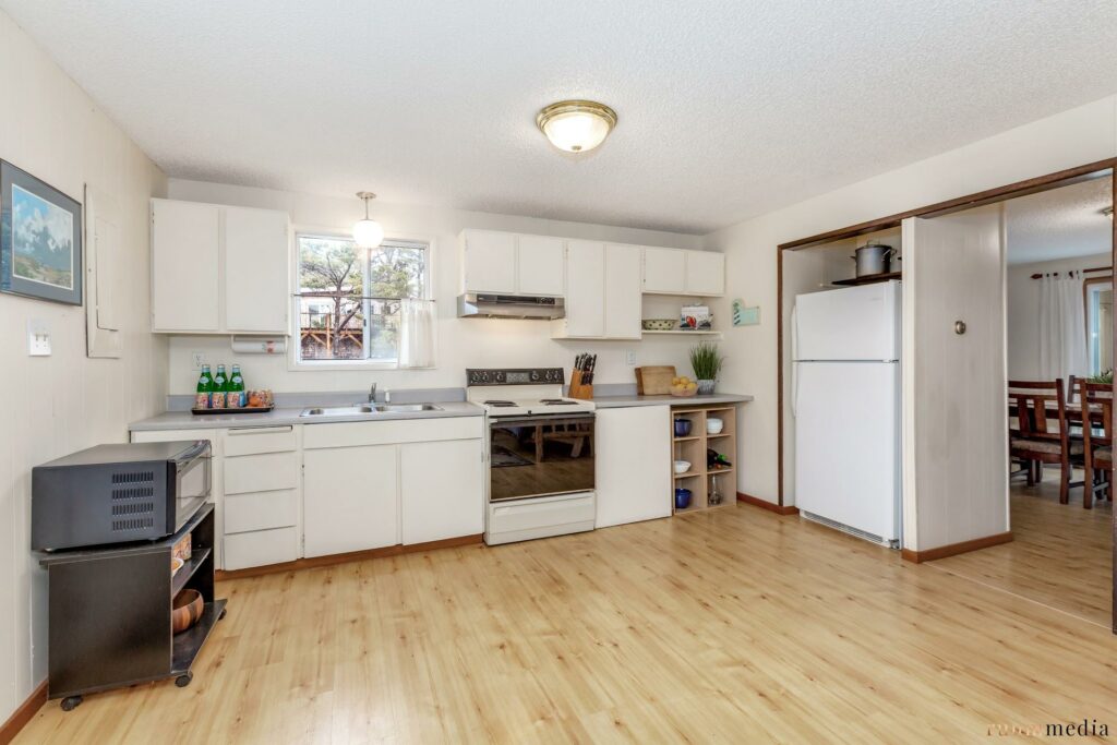 Upon entering you’ll notice vaulted ceilings and wonderful natural light. The floor plan flows easily into the formal dining room and formal living room, wonderful for entertaining and intimate dinners alike. You’ll love how the living room shines with an oversized picture window and soaring ceilings. Making your way into the heart of the home is the beautifully updated kitchen featuring ample counter space, storage galore and soaring ceilings. A dining nook and breakfast bar help to make this space feel both spacious and inviting.