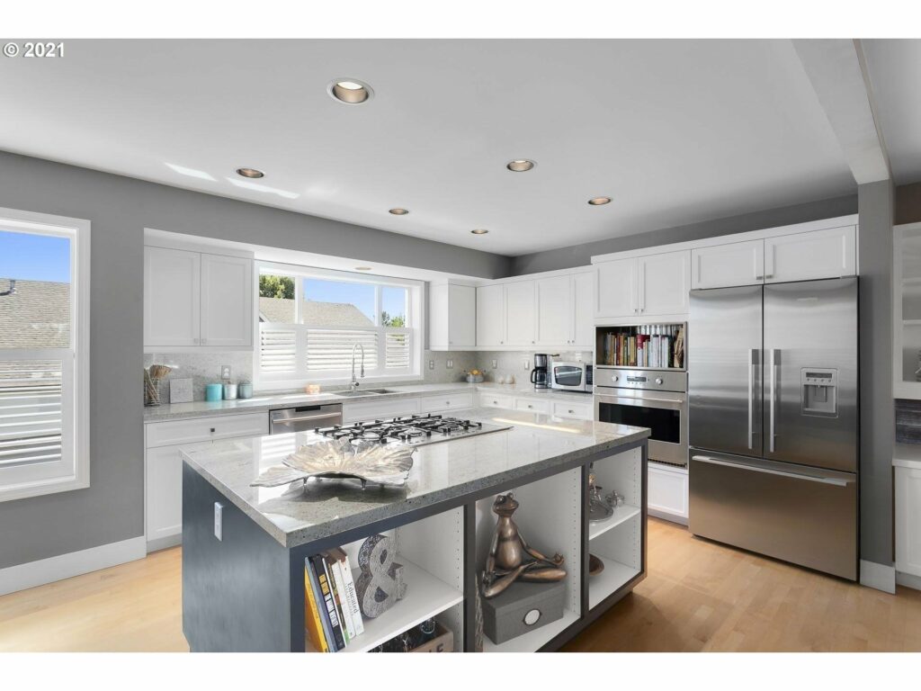 Bright and open, tastefully updated townhome with river views from every floor. Two master suites, vaulted bedroom ceilings, two decks overlooking the river, and a spacious kitchen with granite countertops, gas range, and custom built-ins. Double car garage with extra storage, newly updated bathrooms, new interior paint, newer living room carpet, gas fireplace with updated stone facade, custom closet organizers, and more. The large windows make this home especially bright and inviting.